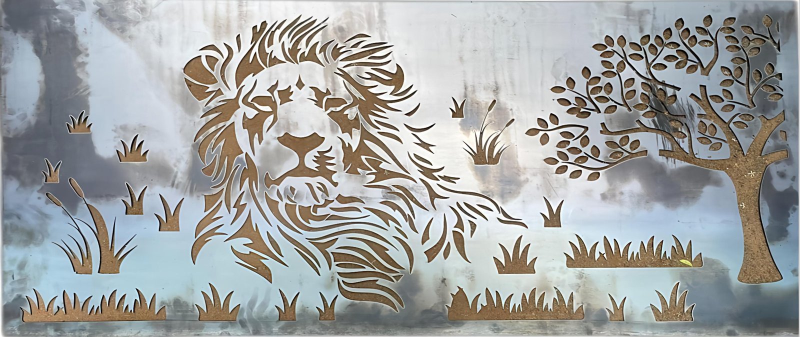 cnc Lion with Tree and Grass Design svg/dxf file